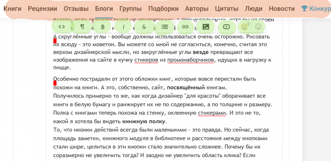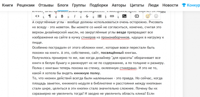В целом, я готов смириться с потерей дизайна в пользу функционала - добавление изображений в рецензии, например. Иллюстративный материал иногда очень оживляет мысль.