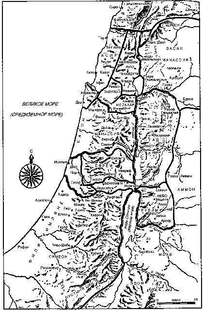 К слову сказать, в Библии это не упоминается, но Карфаген тоже принадлежал к землям Ханаана (финикийская колония), и в 146 г. до н.э был разрушен римлянами и объявлен проклятым и его навсегда запретили восстанавливать, но спустя столетие с хвостиком отстроили, и он благополучно просуществовал еще шесть столетий. Но вернемся к военным походам Иисуса Навина. После падения Иерихона войска пошли на Запад, взяли город Гай, встревоженные жители города Гаваон, которые хитростью проникли в ставку израильтян, прикинулись жителями дальней страны и заключили с Иисусом Навином союз. Обман был раскрыт, союз есть союз, не рушим, но Навин в бешенстве проклял жителей города и обрек их на вечное рабство. Цари городов Ханаана видя захват соседей, поняли, что их перережут вместе и их людьми как котят, объединились и попробовали нанести превентивный удар, не дожидаясь нападения на их вотчины, но раньше надо было думать битва закончилась их пораженьем, южный Ханаан был большей частью покорен. Кстати, одним городов оставшийся независимым в той области - Иерусалим (по факту, в Библии он в тот период не упоминается). Далее было объединение северного Ханаана и попытка дать отпор врагу, но Иисус Навин продолжал победоносное шествие разрушая взятые города, но были и области Ханаана, которые остались не завоеванными и автономными. В частности это Филистия. Геродот в 5 в. до н.э. упоминает об этом месте как о Палестине. Филистии принадлежали пять городов: Екрон, Азот (Ашдот), Аскалон (Ашкелон), Геф (Гат) и Газа. Хотя завоевание Ханаана еще не завершилось, Книга Иисуса Навина переходит к описанию распределения ханаанской земли между коленами Израилевыми.