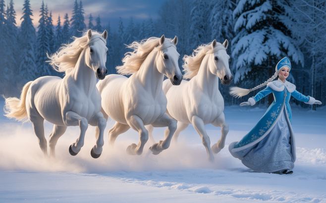 Три белых коня и Снегурочка