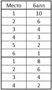 Как-то я не поняла табличку. Наверное, 1 место=10 баллов, 2 место=8 баллов, так ведь? Или теперь чем меньше баллов, тем выше место?