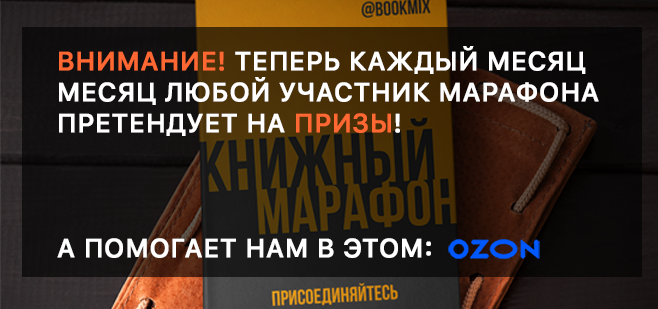 У Книжного марафона есть партнер - интернет-магазин OZON.ru! Благодаря его поддержке каждый участник может получить приятные призы и бонусы по итогам каждого месяца. В данной теме мы будем объявлять нескольких победителей в первых числах каждого месяца. Бежать Книжный марафон стало еще более увлекательным и азартным занятием!
