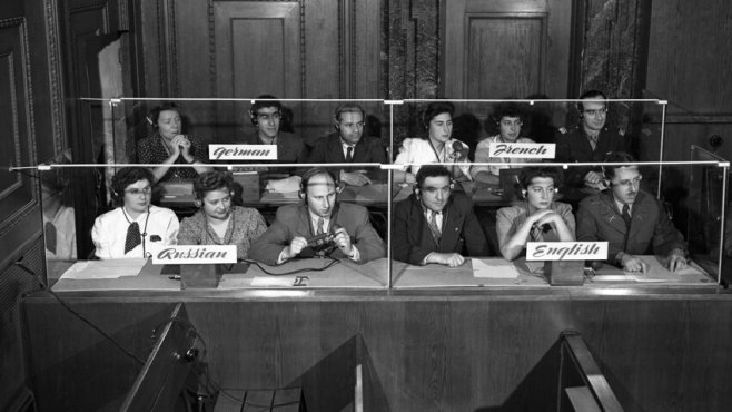 — Я не про тех, кто в зале! — нервно взвился Гаврик. — Я про наших переводчиков. Они сидят в кабинке прямо над скамьей подсудимых за стеклянной перегородкой и переводят с немецкого, французского и английского на русский, причем на троих у них один микрофон. Знаешь как трудно переводить на слух живую речь? Да еще разных людей! Да еще переводить максимально точно юридические термины! Напряжение страшное. Да еще надо не отстать от говорящего!..»